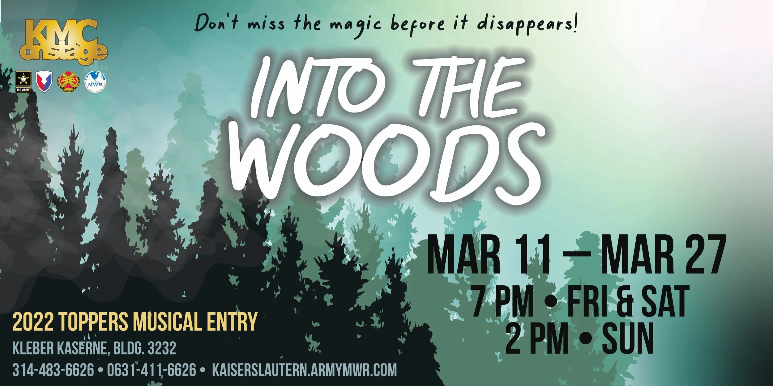 For this production, we want to lean into the darker tones of the show and add some mystery to the advertising. Their concept is the dark, Bavarian Forest with hidden characters and shadows being prominent.